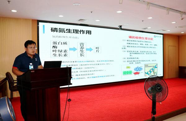 云南云天化華北大區(qū)農(nóng)化技術(shù)專家何滿朝介紹了磷肥的發(fā)展歷程、云天化新品磷肥的特性以及銷售推廣的經(jīng)驗(yàn)分享。