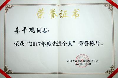 會(huì)議對(duì)中農(nóng)集團(tuán)2017年度4家先進(jìn)集體和20名先進(jìn)個(gè)人進(jìn)行了表彰。我公司黨委書記、總經(jīng)理李平現(xiàn)榮獲“2017年度先進(jìn)個(gè)人”稱號(hào)。
