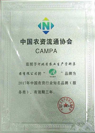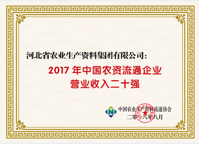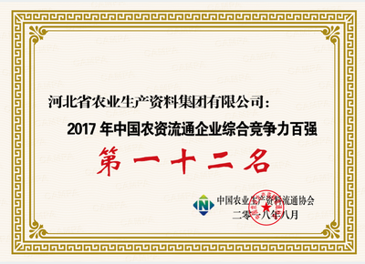 集團(tuán)公司榮獲中國農(nóng)資流通企業(yè)綜合競爭力百強(qiáng)、中國農(nóng)資行業(yè)知名品牌