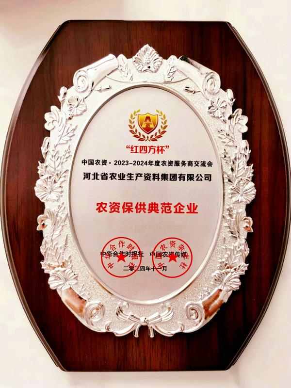 同日,由中華合作時報社、中國農資傳媒、中國磷復肥工業(yè)協(xié)會主辦的“‘紅四方杯’中國農資?2023-2024年度農資服務商交流會”在南京舉行。會上發(fā)布了2023-2024年度農資服務商典范企業(yè)名單,集團公司榮獲“農資保供典范企業(yè)”榮譽稱號。