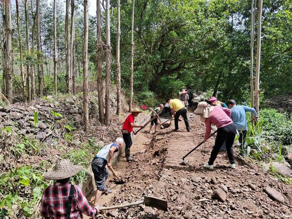 廣西武宣縣東鄉(xiāng)鎮(zhèn)屯應村黨員干部與群眾一起修水渠抗旱。雷正曉 攝