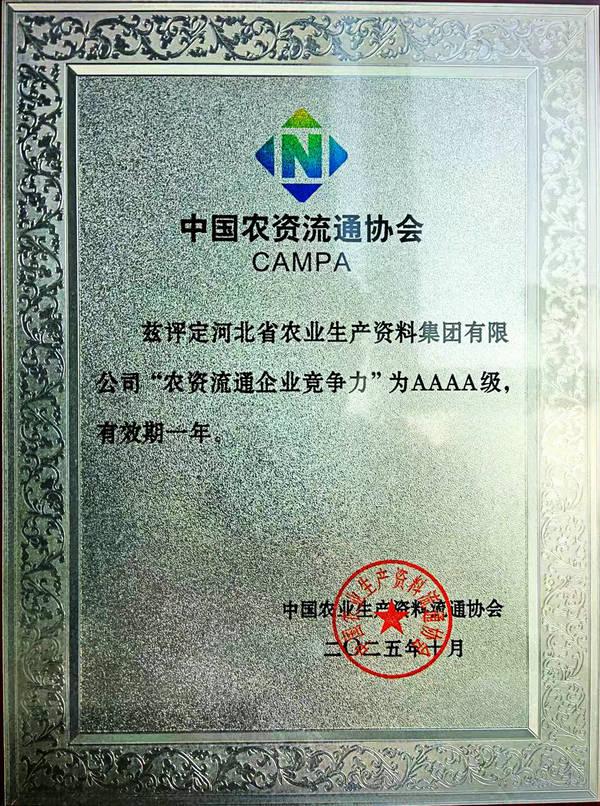 本網訊 11月4日,中國農業(yè)生產資料流通協會在江蘇省南京市召開“2025年度中國農資經銷商年會”。會上發(fā)布了“2024/2025中國農資流通行業(yè)發(fā)展報告”,公布了2025年度中國農資流通企業(yè)信用等級評價結果、2025年度農資流通企業(yè)競爭力評價及農資行業(yè)知名品牌認定結果。集團公司被評為“AAA級信用企業(yè)”,同時榮獲“2025年度農資流通企業(yè)競爭力AAAA級”,“冀農”品牌被評為‘“AAA”級農資行業(yè)知名品牌(產品類)。